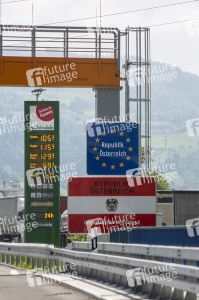 Hinweisschilder Grenzverkehr zur Grenze Österreich - Deutschland