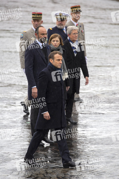 Emmanuel Macron und Edouard Philippe bei der 101. Jahrfeier des Waffenstillstands von 1918 am Triumphbogen. Paris, 11.11.2019