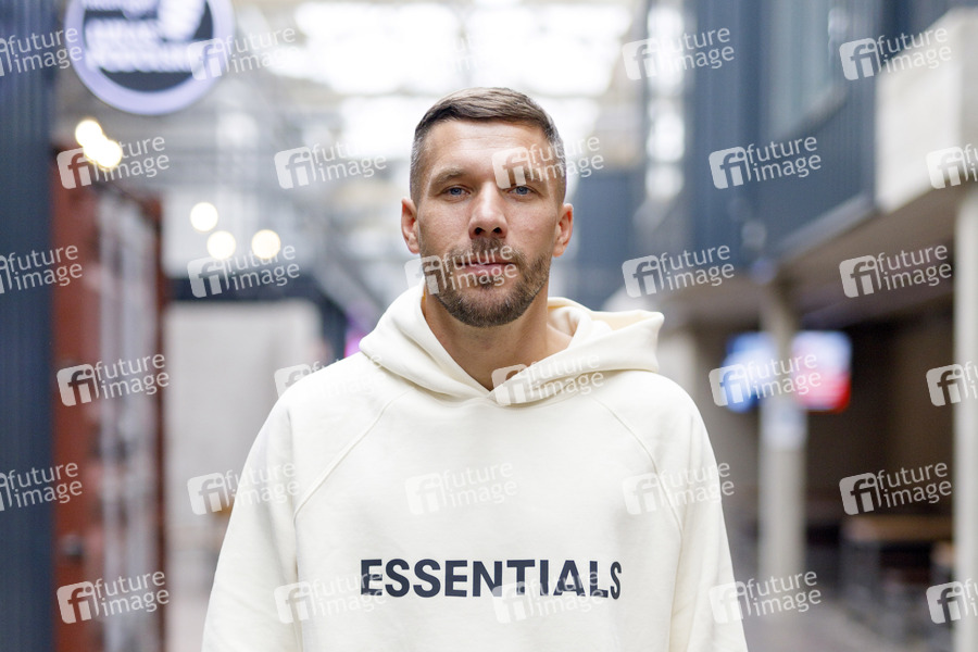 Lukas Podolski bei der Übergabe der Spende von 250.000 Euro aus der REWE Jackpot Aktion an die Lukas Podolski Stiftung in der Strassenkicker Base. Mit dem Großteil des gesammelten Geldes wird der Bau eines modernen Straßenkicker-Courts in Köln Müngersdorf unterstützt. Der darüber hinaus gehende Spendenbetrag fließt als Fördermittel in weitere soziale Projekte der Lukas Podolski Stiftung, vor allem in den Aufbau und die Unterstützung sportbasierter Bildungsprojekte für Jugendliche und Schulen in der Soccer Halle 'Strassenkicker Base' in Köln-Mühlheim (Quelle: https://fuerdenfussball.rewe.de/). Köln, 01.07.2021