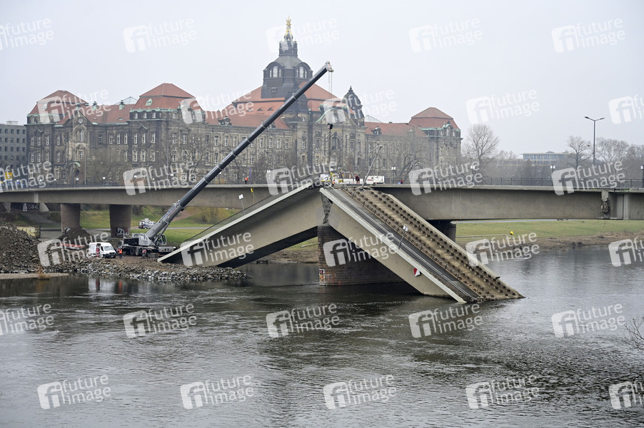 In Dresden ist am 11. September 2024 ein Teil der Carolabrücke eingestürzt. Die Ursachen für die Schäden liegen in der Bauzeit. Alle Brückenzüge sind betroffen und müssen abgerissen werden. Dresden, 06.02.2025