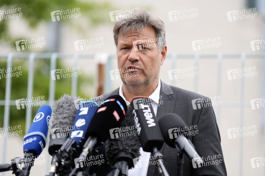Robert Habeck beim Pressestatement zum Kabinettbeschluss zum Wasserstoffbeschleunigungsgesetz und zur Carbon Management Strategie vor dem Bundeskanzleramt. Berlin, 29.05.2024
