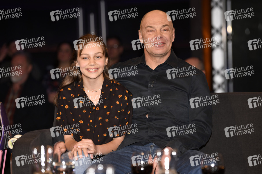 Lilly Stoephasius mit Vater Oliver Stoephasius bei der Aufzeichnung der 'NDR Talk Show' im NDR-Studio auf dem Messegelände. Hannover, 06.03.2020
