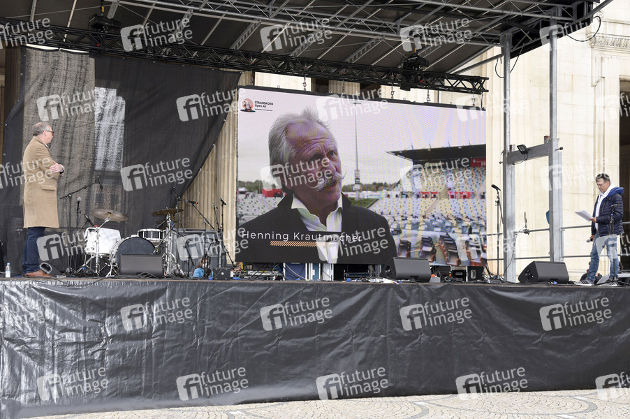 Matthias Gibson und Bela Rieger bei der Demonstration 'Aufstehen für Kultur 2' auf dem Königsplatz. München, 13.05.2021