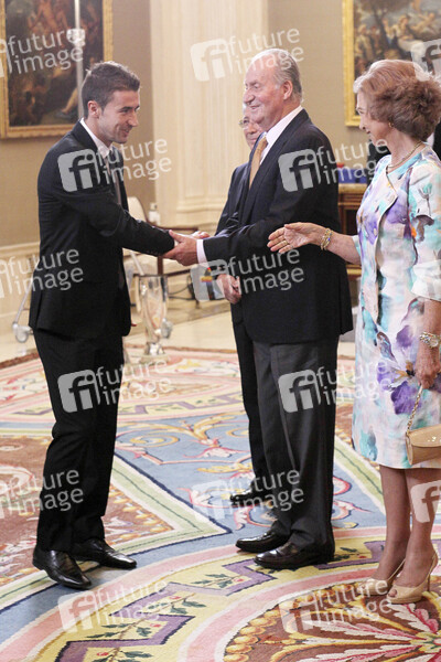 König Juan Carlos und Königin Sophia empfangen Spieler und Funktionäre von Atletio Madrid im Palacio de la Zarzuela, Madrid