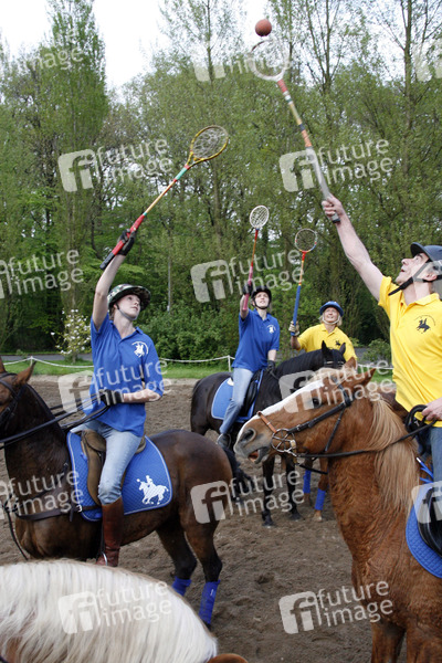 Sportlerinnen, Sportler, Reiter, Reiterinnen, Tiere, Pferde, Polocrosse ist eine Kombination von Polo und Lacrosse