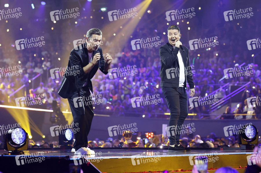 Florian Silbereisen und Marco Schuitmaker in der TV Show 'Schlagerbooom 2025 - Alles funkelt! Alles glitzert!' in der Dortmunder Westfalenhalle. Dortmund, 18.10.2025