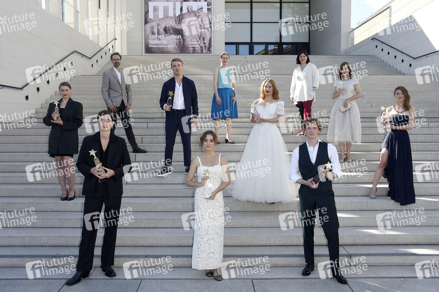 Zygimante Elena Jakstaite, Gustav Lindh, Carlo Chatrian, Albrecht Schuch, Alba Baptista, Mariette Rissenbeek, Seidi Haarla, Cassandra Han, Martijn Lakemeier, Natasa Stork und Sara Klimoska beim Photocall mit den European Shooting Stars 2021 auf der Berlinale Summer Special 2021 / 71. Internationale Filmfestspiele Berlin auf der James Simon Treppe vor der James-Simon-Galerie. Berlin, 14.06.2021