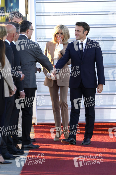 Emmanuel Macron mit Ehefrau Brigitte Macron bei der Ankunft zum G7-Gipfel am Flughafen München Franz Josef Strauß. München, 25.06.2022