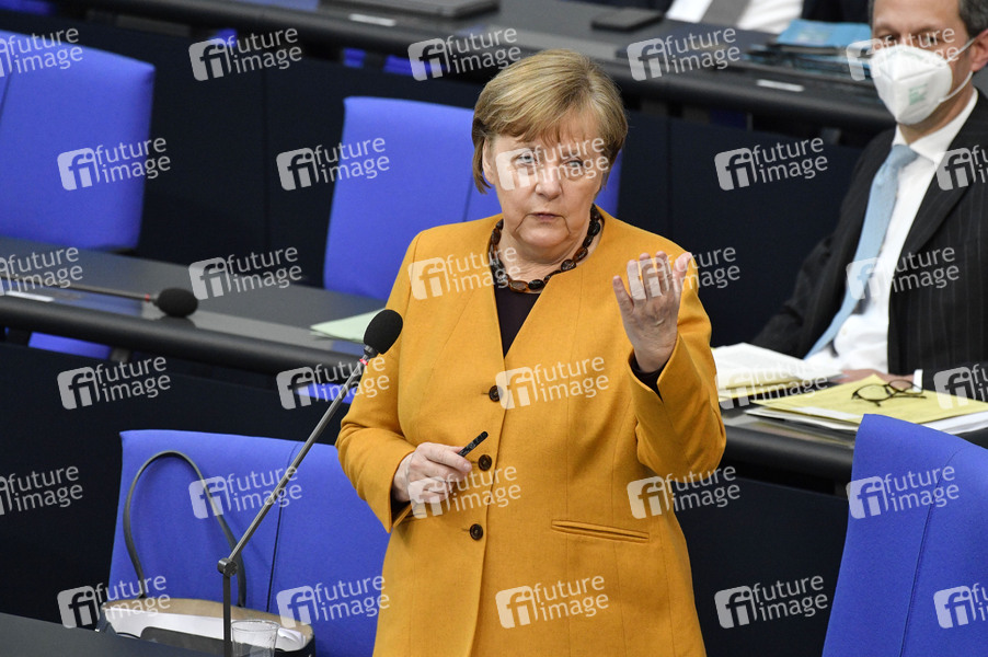 Angela Merkel in der 217. Sitzung des Deutschen Bundestages im Reichstagsgebäude. Berlin, 24.03.2021