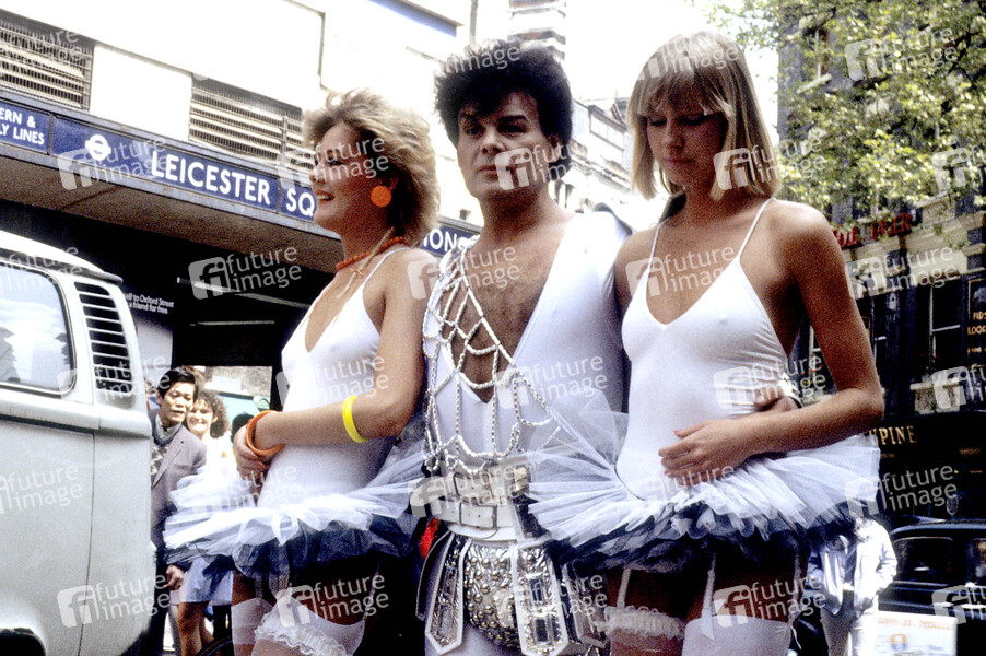 Gary Glitter beim Pressetermin zur Präsemntation seines Albums 'Boys Will Be Boys' im Hippodrome. London, 24.05.1984