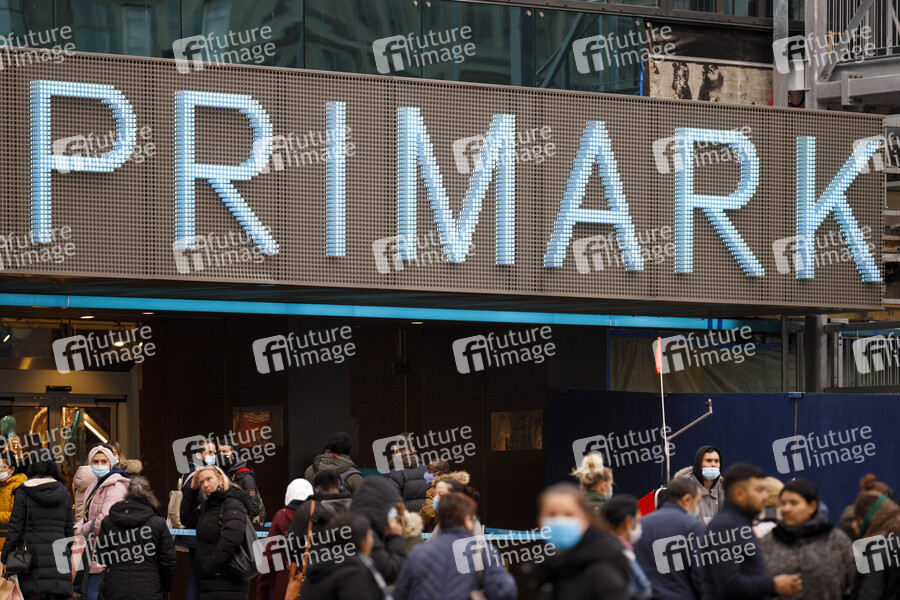 Primark, Textil-Discount, Textil-Discounter, Textildiscount, Modegeschäft, Flagship-Store, Primark Köln, Primark-Eröffnung, Primark-Filiale, Modemarkt, Billigkonzept, Billig-Mode, Verdrängungswettbewerb, Expansion, Bekleidungsfirma, Modekonzern, Produktionsbedingungen, Billigmode, Billigkleidung, Primark-Geschäft, Billig-Modekette, Textileinzelhandel, Kleidung, Mode, irischer Discounter, Kaufrausch, Primark Deutschland GmbH, Billigkette, Bekleidung, Textilien, ABF, Associated British Foods, Corona, Pandemie, Gewinneinbruch, geschlossene Filialen, Logo, Corona, Kunden, Pandemie, Virus, Infektionsgefahr, Corona-Regeln, Maskenpflicht, Mindestabstand, Kunden pro Quadratmeter, Ladenfläche, Symbolbild, Symbolfoto