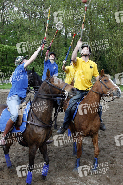 Sportlerinnen, Sportler, Reiter, Reiterinnen, Tiere, Pferde, Polocrosse ist eine Kombination von Polo und Lacrosse