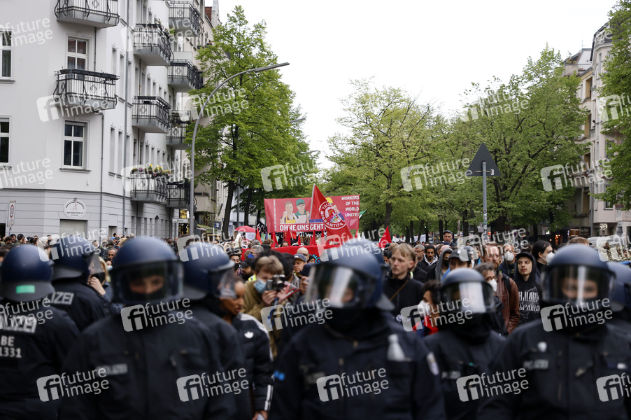 Polizei bei der Revolutionären 1.Mai-Demo unter dem Motto 'Revolutionärer Erster Mai: Yallah Klassenkampf - No war but classwar!' von Neukölln nach Kreuzberg. Berlin, 01.05.2022
