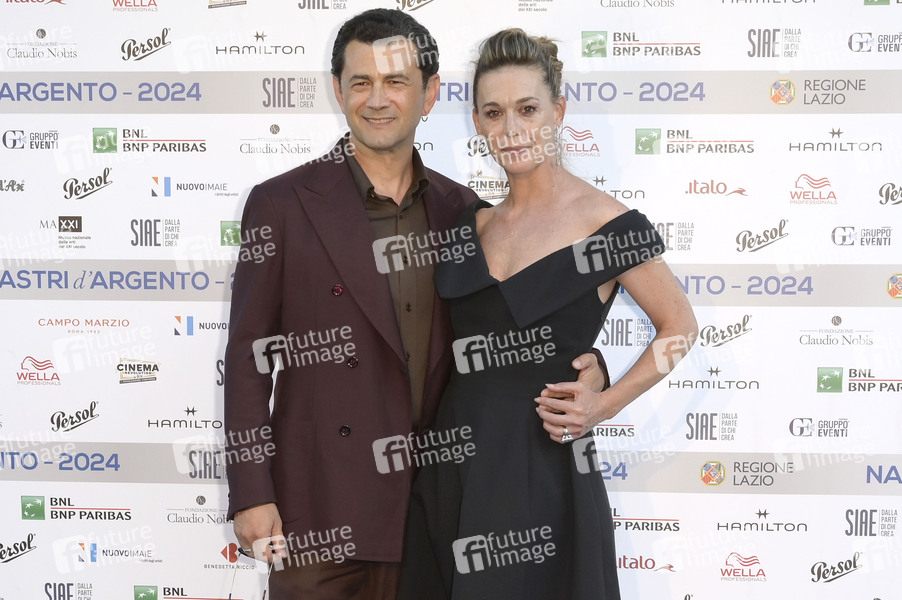 Vinicio Marchioni mit Ehefrau Milena Mancini bei der Verleihung der Nastri d'Argento 2024 im Museo nazionale delle arti del XXI secolo. Rom, 27.06.2024
