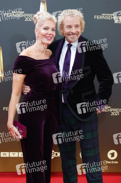 Thomas Gottschalk mit Partnerin Karina Mroß bei der Verleihung des Deutschen Fernsehpreises 2021 im Tanzbrunnen. Köln, 16.09.2021