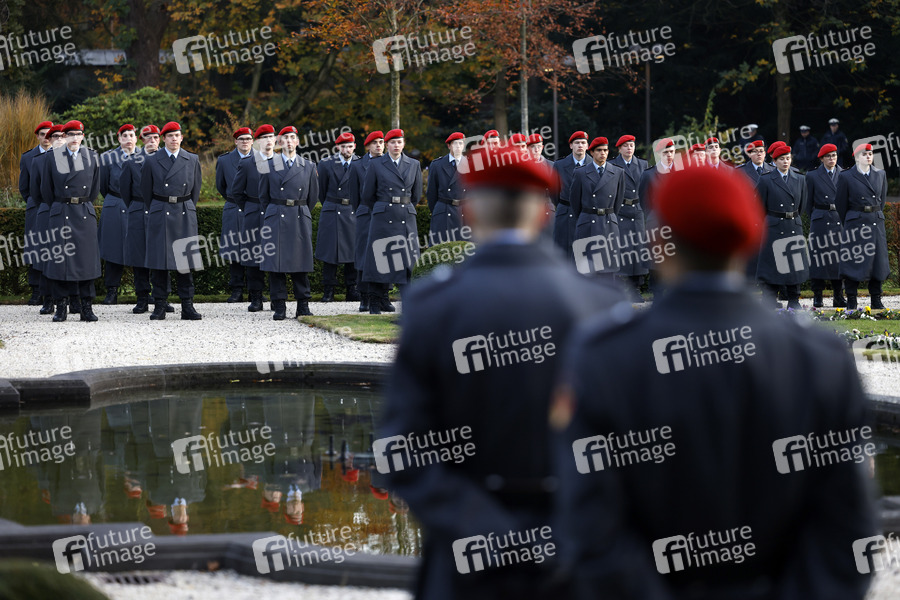 Rekruten und Rekrutinnen nehmen anlässlich des 66. Gründungs-jahres der Bundeswehr am feierlichen Gelöbnis vor der Villa Hammerschmidt in Bonn teil. 50 Soldatinnen und Soldaten des ABC-Abwehrbataillons 7 aus Höxter und des ABC-Abwehrbataillons 750 aus Bruchsal legen hier ihr Gelöbnis ab. Bonn, 12.11.2021
