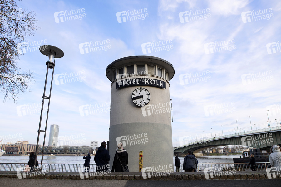 Rheinpegel, Fluss, Rhein, Pegelstand, Pegel, Pegeluhr, Hochwasser, Rheinboulevard, Pegelmarke, Hochwassermarke, Hochwasserwelle, Scheitelpunkt, Rhein-Pegel, Flussbett, Flut, Schifffahrt, Hochwasserschutz, Wasserstand, Mittelwasser, Tauwetter, Rheinschifffahrt, Rheinufer, Rhein-Ufer, Hochwasserschutzzentrale, Hochwasserwelle, Rheinuferpromenade, Pegel-Nullpunkt, Hochwasserlage, Hochwassermeldedienst, Hochwasserinformationsdienst, Wasserstände, Pegelstände, Wetterlage, ansteigendes Wasser, steigender Pegel, Rheinufer, Schmelzwasser, Wetter, Symbolbild, Symbolfoto