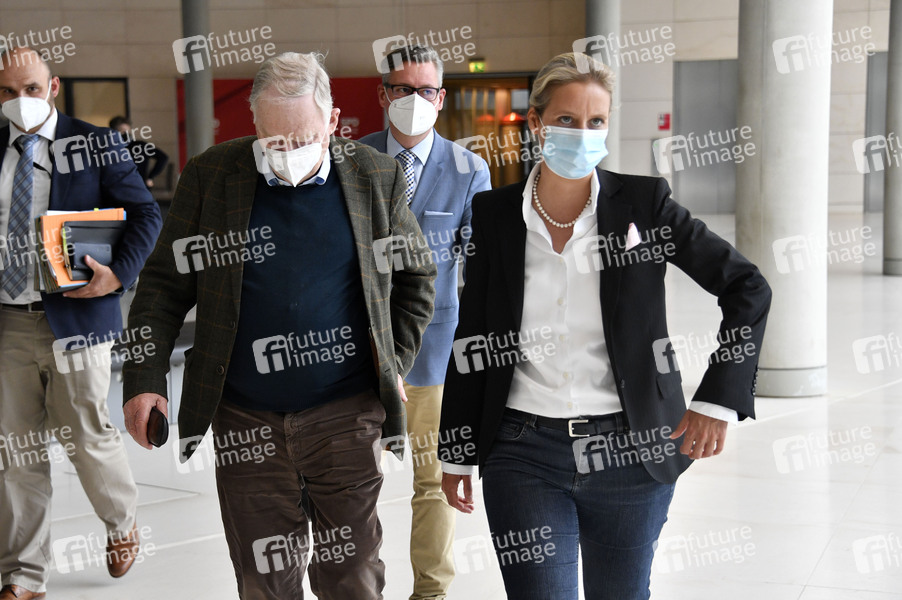 Alexander Gauland und Alice Weidel bei einem Pressestatement der AfD vor der Fraktionssitzung auf der Fraktionsebene im Reichstagsgebäude. Berlin, 18.05.2021