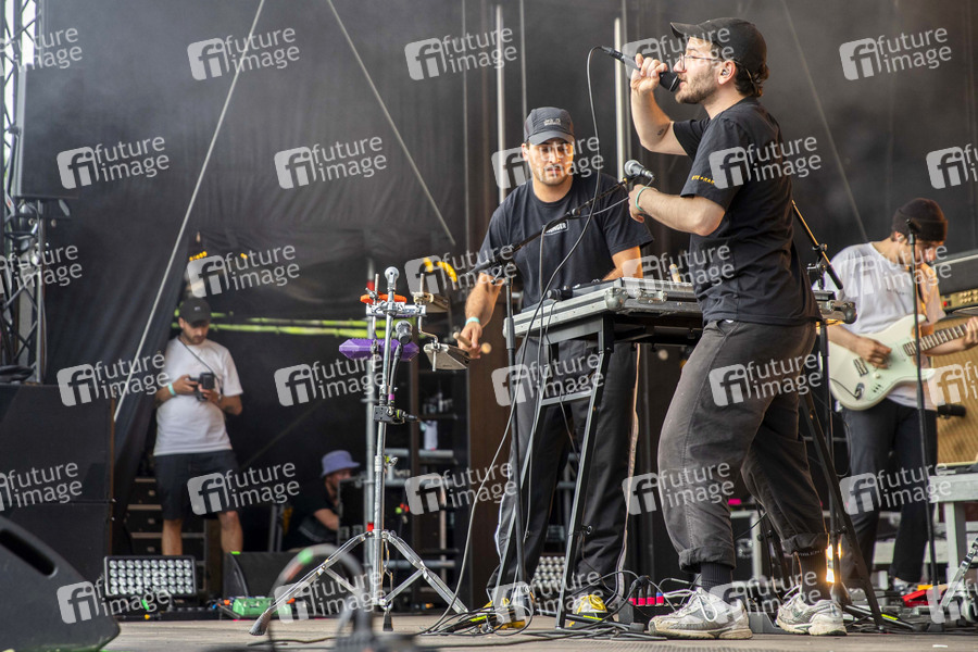 Djamin Izadi, Jakob Amr und Lennart Eicke von den Leoniden live beim Picknick Konzert auf der Zoopark Festwiese. Erfurt, 10.07.2021