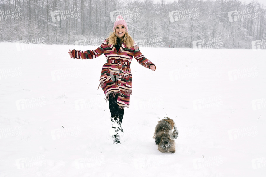 Alessandra Geissel mit ihrem Hund Kira beim Winterspaziergang im Truderinger Wald. München, 06.01.2021