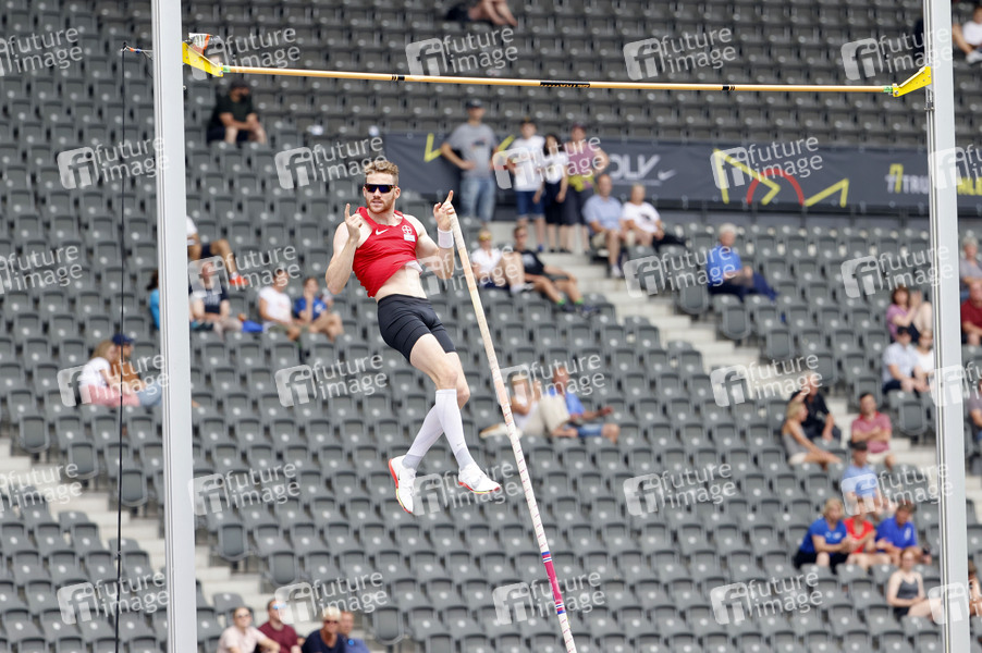 Torben Blech beim Sportevent Die Finals - Berlin 2022 mit der Leichtathletik Disziplin Stabhochsprung Männer im Olympiastadion. Berlin, 25.06.2022