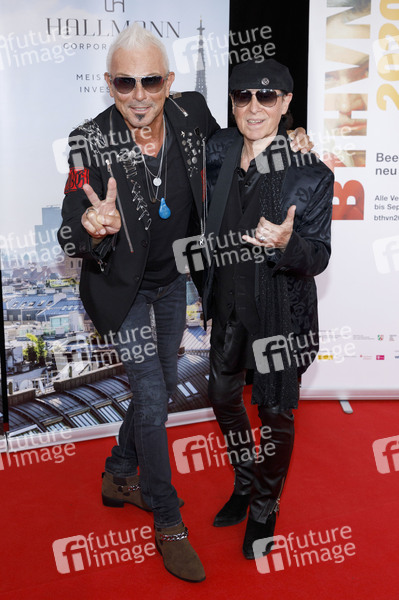Rudolf Schenker und Klaus Meine von den Scorpions bei der Europäischen Kulturpreisgala 2021 im Opernhaus. Bonn, 28.08.2021