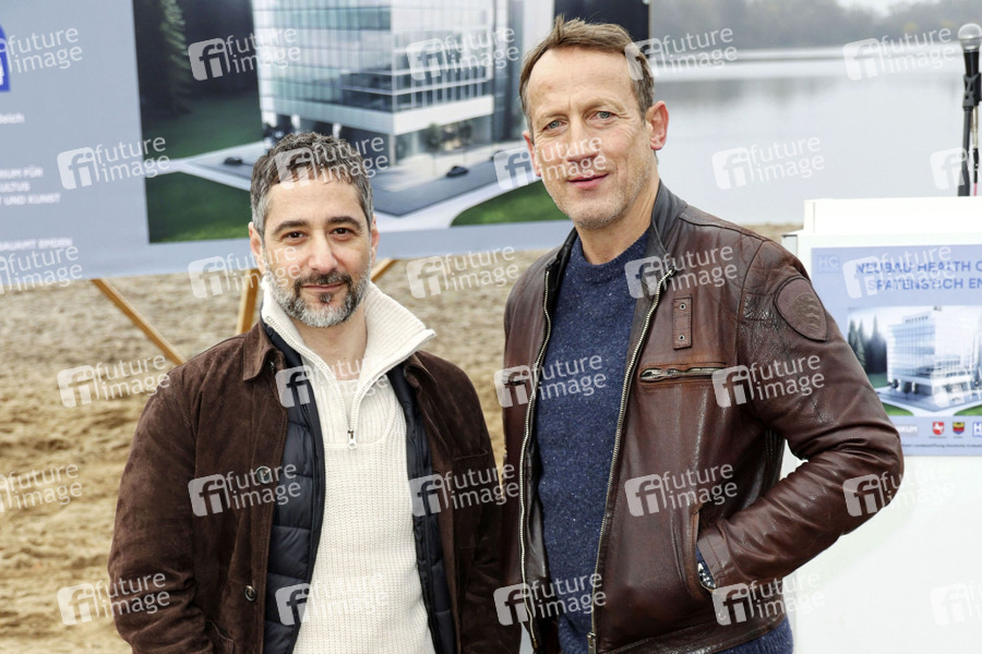 Denis Moschitto und Wotan Wilke Möhring beim Fototermin am Set der Doppelfolge des ARD-Krimis 'Tatort - Ein guter Tag / Schwarzer Schnee' am Eichbaumsee in Moorfleet. Hamburg, 27.11.2024