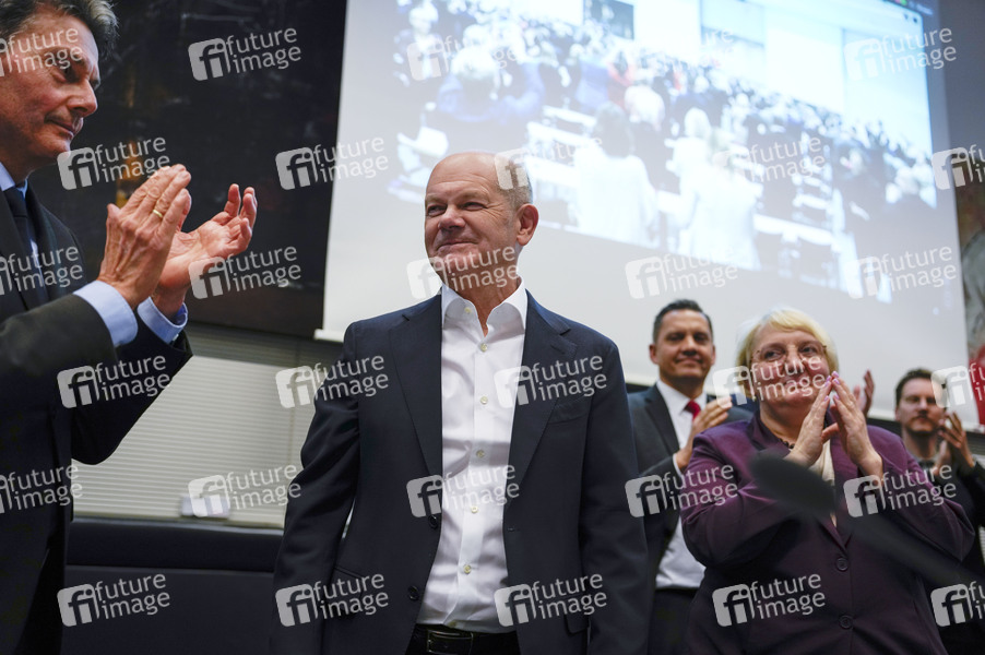 Olaf Scholz bei der Fraktionssitzung der SPD-Bundestagsfraktion nach dem Ampel-Aus im Reichstagsgebäude. Berlin, 06.11.2024