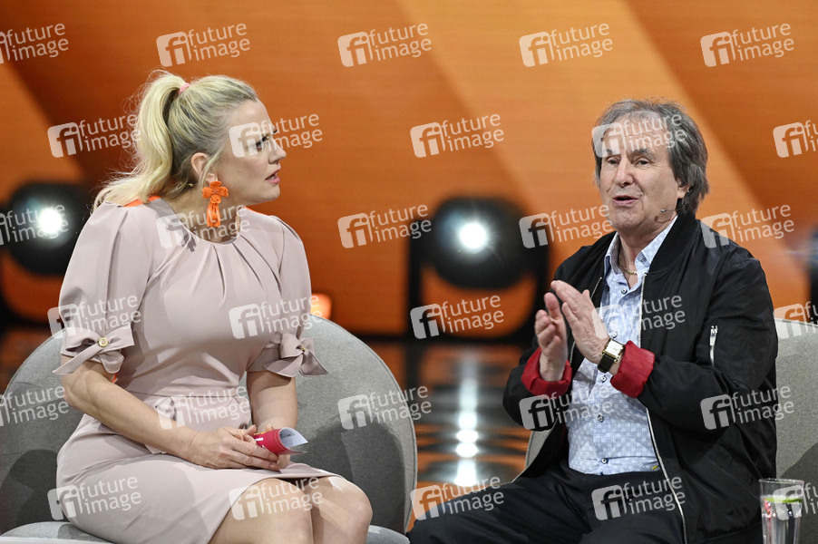 Barbara Schöneberger und Chris de Burgh bei der Aufzeichnung der ARD-Unterhaltungsshow 'Verstehen Sie Spass?' im Studio H in Berlin-Adlershof. Berlin, 31.03.2022