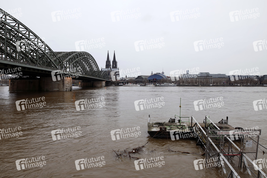 Rheinpegel, Fluss, Rhein, Pegelstand, Pegel, Hochwasser, Rheinboulevard, Pegelmarke, Hochwassermarke, Hochwasserwelle, Scheitelpunkt, Rhein-Pegel, Flussbett, Flut, Schifffahrt, Hochwasserschutz, Wasserstand, Mittelwasser, Tauwetter, Rheinschifffahrt, Rheinufer, Hochwasserschutzzentrale, Hochwasserwelle, Rheinuferpromenade, Pegel-Nullpunkt, Hochwasserlage, Hochwassermeldedienst, Hochwasserinformationsdienst, Wasserstände, Pegelstände, Wetterlage, ansteigendes Wasser, steigender Pegel, Hohenzollernbrücke, Rheinufer, Wetter, Symbolbild, Symbolfoto