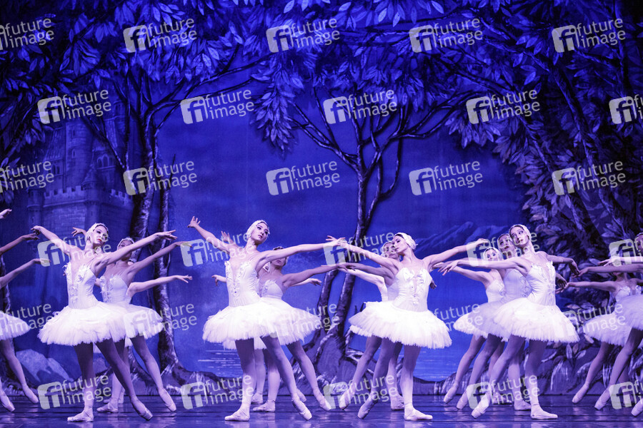 Ballett, Tanz, Ballettensemble, Körperbeherrschung, Körperspannung, Athletik, Körperkunst, Ballettkompanie, Schwanensee, Choreografie, Schwäne, Schwan, Tschaikowski, Schwanenprinzessin, Märchen, Märchenmotiv, Parabel, Fabel, Zauber, Fluch, Prinzessin, Traumprinz, Erlösung, Königin, Odile, schwarzer Schwan, weißer Schwan, Mythos, Libretto, Romantik, Zeitgenössischer Tanz, Tanztheater, Corps de ballet, Bühnenwerk, Aufführung, Stück, Bühne, Hofgesellschaft, Hofstaat, Operette, Ballerina, Primaballerina, Kultur, Kulturerbe, Nationalballett, Staatsballett, russische Kultur, Symbolbild, Symbolfoto