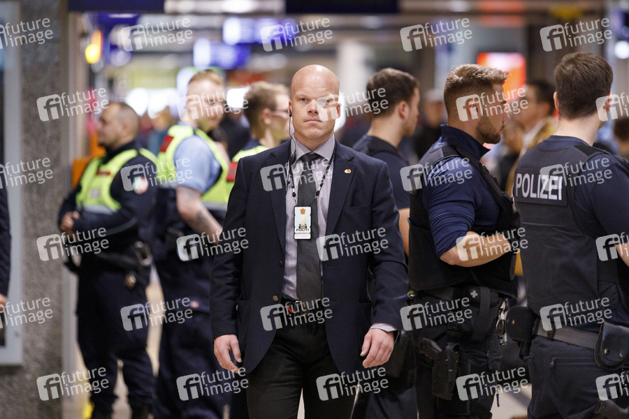 Bodyguard von Kronprinzessin Mette-Marit und Kronprinz Haakon von Norwegen und Polizei beim Besuch des norwegischen Kronprinzenpaares in der Buchhandlung Ludwig im Kölner Hauptbahnhof. Köln, 14.10.2019
