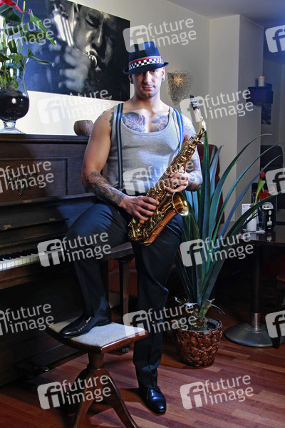 SOLsnap Cover-Model April 2013, Club, Bar, Musik, Jazz, Tattoo, Tätowierung, Saxophon, Saxofon, Musiker