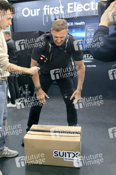 Ralf Moeller bei der Präsentation der Weltneuheit 'SUITX' am Stand des Medizintechnikunternehmens Ottobock auf der Hannover Messe 2025 auf dem Messegelände. Hannover, 31.03.2025