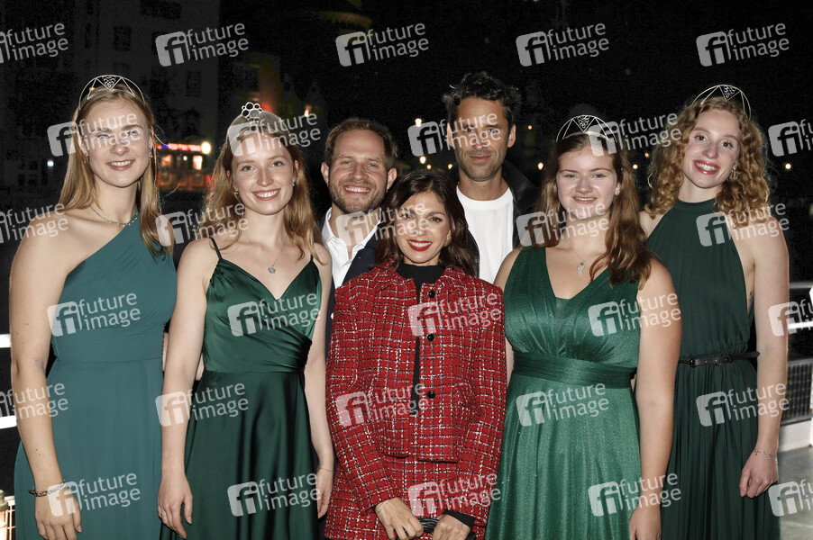 Arne Löber, Anna Angelina Wolfers, Kai Albrecht und Weinköniginnen beim Pressetermin zur SAT.1 Serie 'Für alle Fälle Familie' auf der MS RheinVision. Köln, 30.09.2024