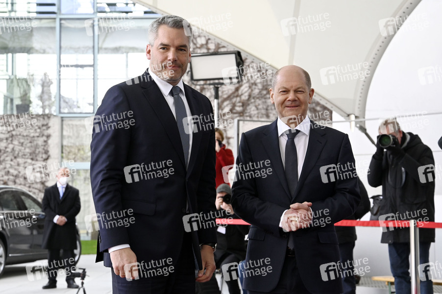 Karl Nehammer und Olaf Scholz beim Empfang des Bundeskanzlers der Republik Österreich mit militärischen Ehren im Bundeskanzleramt. Berlin, 31.03.2022
