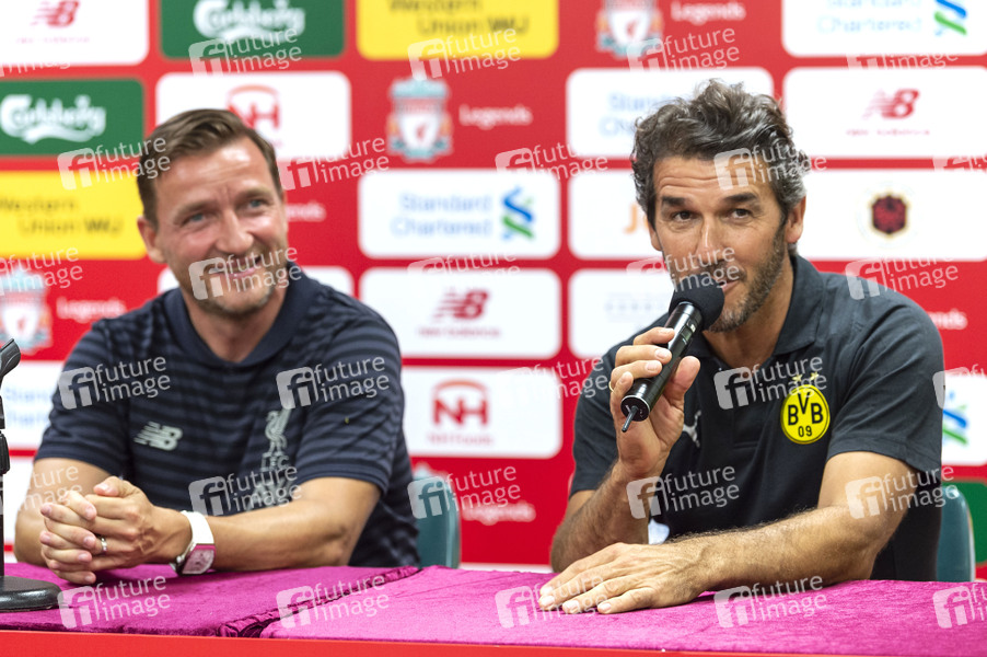 Vladimir Smicer und Karl-Heinz Riedle bei der Pressekonferenz zum Fußballspiel Liverpool FC Legends gegen Borussia Dortmund Legends im Hong Kong Stadion. Hongkong, 06.06.2019