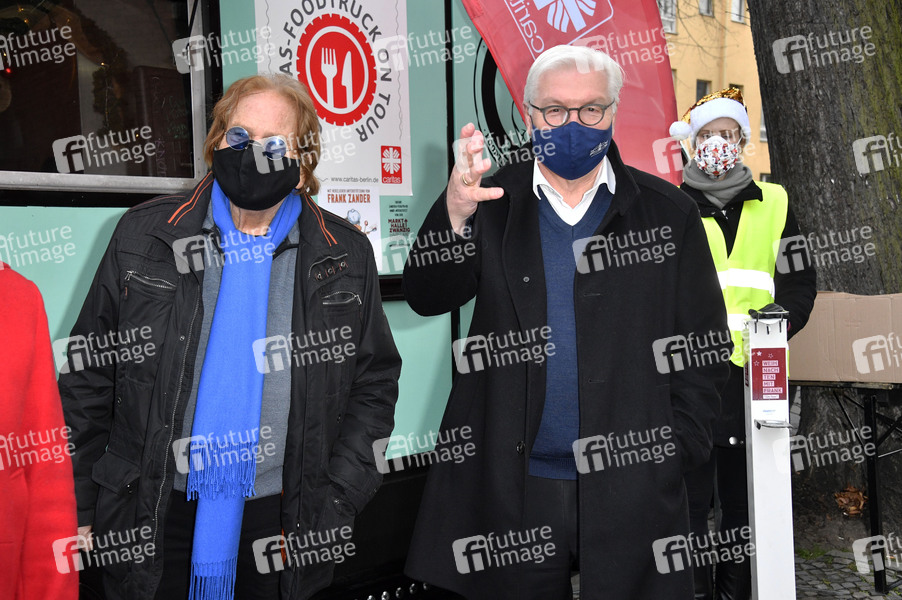 Frank Zander und Bundespräsident Frank-Walter Steinmeier verteilen Essen und Geschenke aus dem Food Truck an Obdachlose und Bedürftige. Berlin, 16.12.2020
