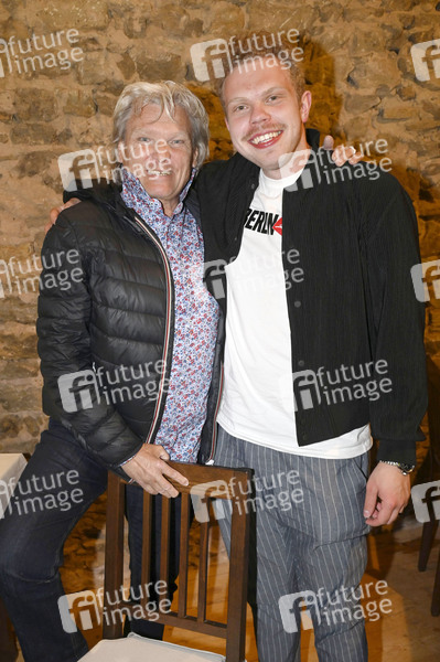 Johannes Berzl und Ernst Hannawald bei der 4. Sternstunden Benefiz Oldtimer Rallye 2022 für geflüchtete Kinder aus der Ukraine (Spendensumme über 12.000 Euro) am Start & Ziel auf dem Kornhausplatz. Spalt, 29.05.2022