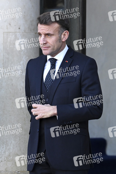Emmanuel Macron beim Treffen der Koaltion der Willigen zu Beratung über die militärische Unterstützung für die Ukraine im Élysée-Palast. Paris, 06.01.2026