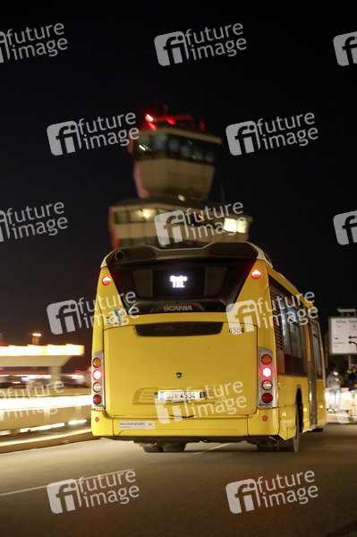 Flughafenbus vor Tower - Der Flugbetrieb am Flughafen Berlin-Tegel 'Otto Lilienthal' wird am 08.10 2020 eingestellt. Berlin, 07.11.2020