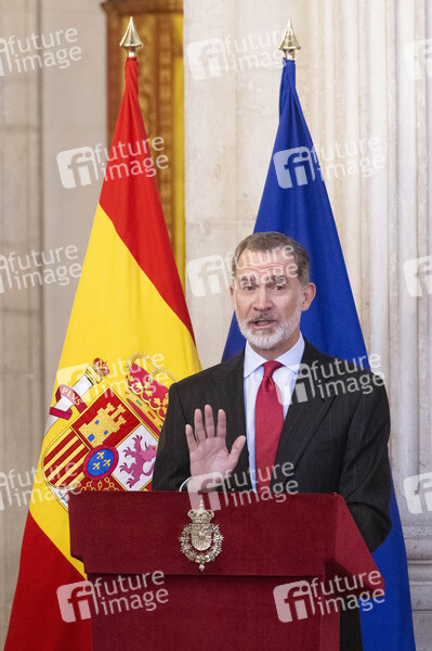 König Felipe VI. von Spanien bei der Präsentation des 'Digital Portal of Hispanic History' im Palacio Real. Madrid, 28.02.2023