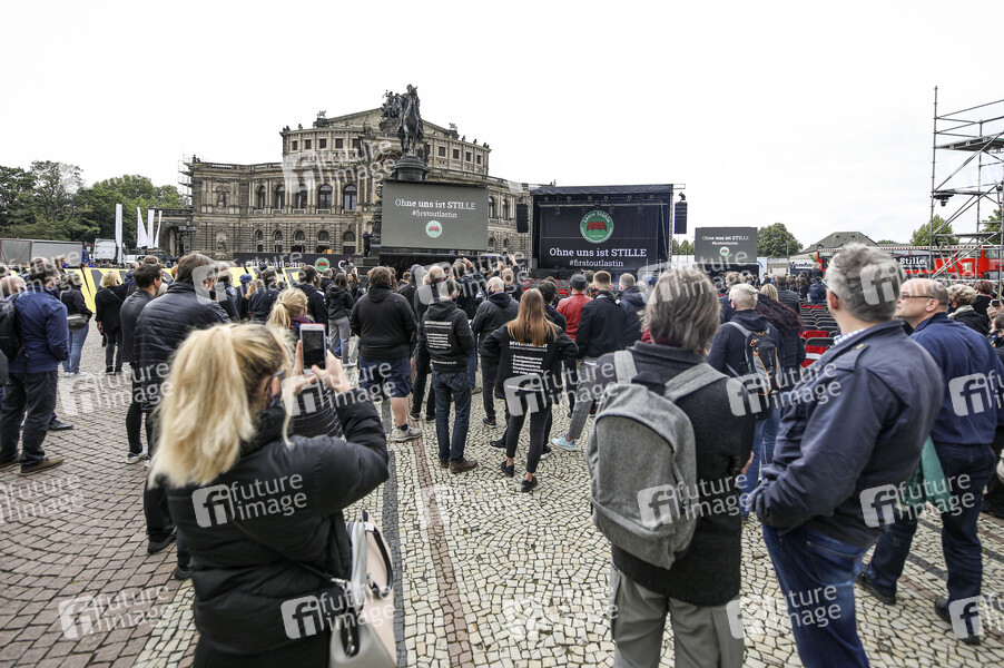 Demonstration 'Ohne uns ist Stille' der Organisation 'Leere Stühle' auf dem Theaterplatz in der historischen Dresdner Altstadt. Künstler, Veranstalter und Unternehmen der Veranstaltungsbranche wie Caterer und Techniker demonstrieren gemeinsem, um auf die Probleme und Wichtigkeit ihrer Branche aufmerksam zu machen. Dredsen, 05.06.2020