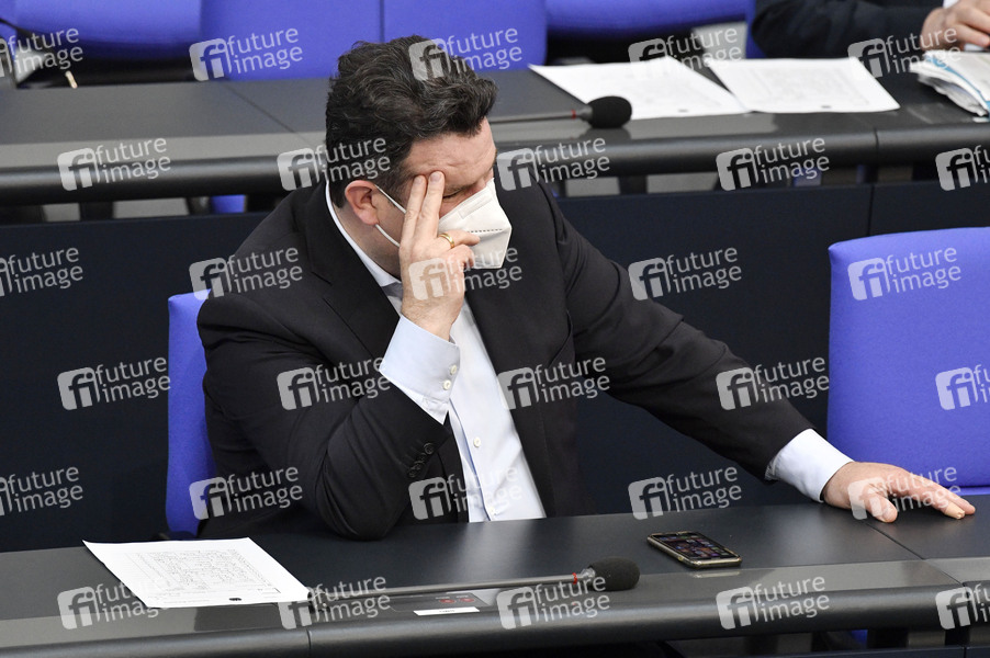 Hubertus Heil in der 221. Sitzung des Deutschen Bundestages im Reichstagsgebäude. Berlin, 15.04.2021