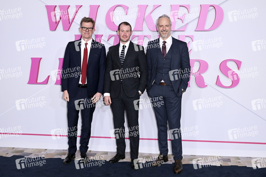 Graham Broadbent, Jonny Sweet und Ed Sinclair bei der Premiere des Kinofilms 'Wicked Little Letters / Kleine schmutzige Briefe' im Odeon Leicester Square. London, 13.02.2024