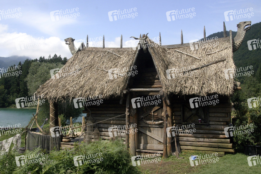 Am Filmset vom Michael 'Bully' Herbig Film 'Wickie und die starken Männer' am Walchensee in Oberbayern zwischen Garmisch und Bad Tölz. Das Wikingerdorf befindet sich in der Sachenbacher Bucht. Das Dorf bleibt nach den Dreharbeiten als Touristenattraktion stehen.