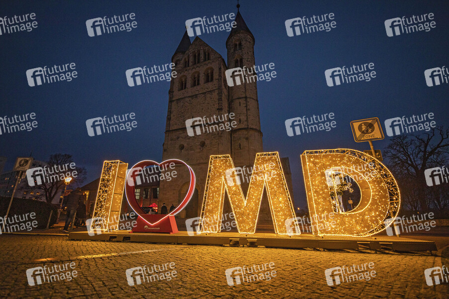 Lichterwelt vor dem Magdeburger Kloster Unser Lieben Frauen - Die Licherwelt Magdeburg mit der umfangreichste Weihnachts- und Winterbeleuchtung in Mitteldeutschland verteilt über die ganze Stadt. Magdeburg, 27.11.2022