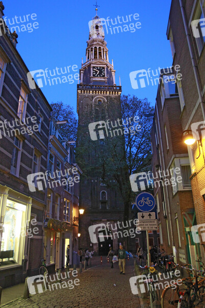 Alte Kirche, das älteste erhaltene Bauwerk in der niederländischen Hauptstadt Amsterdam, Kirchturm, Nachtaufnahme