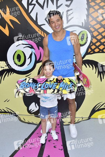 Mario Lopez mit Sohn Dominic beim Start der Pop-up-Skatepark-Initiative 'Bones Love Milk' des California Milk Processor Board. Huntington Beach, 24.07.2019
