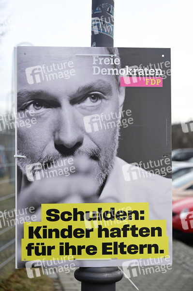 Wahlplakat der FDP mit Christian Lindner zur Bundestagswahl 2025 in Radeberg. Radeberg, 24.01.2025